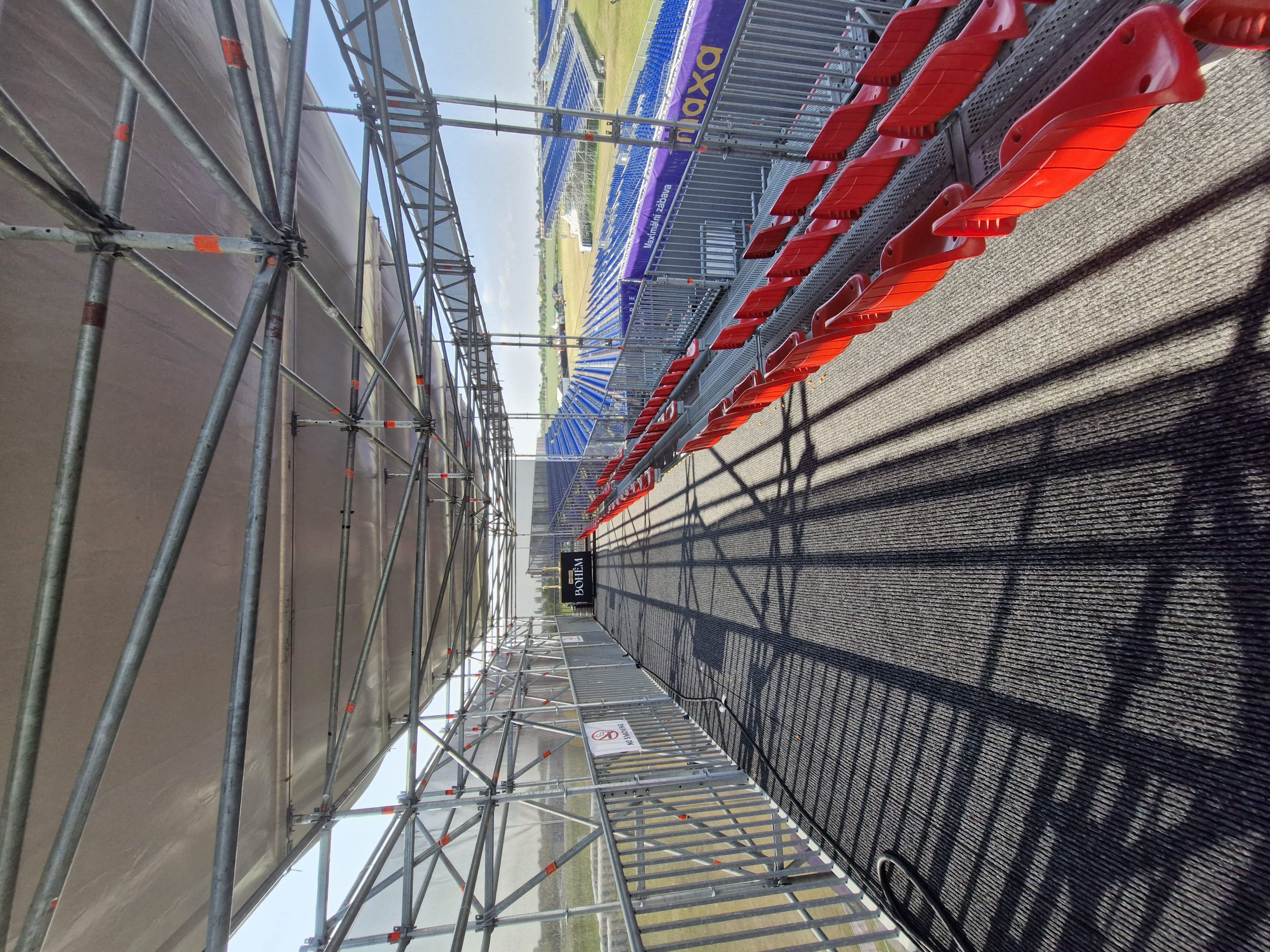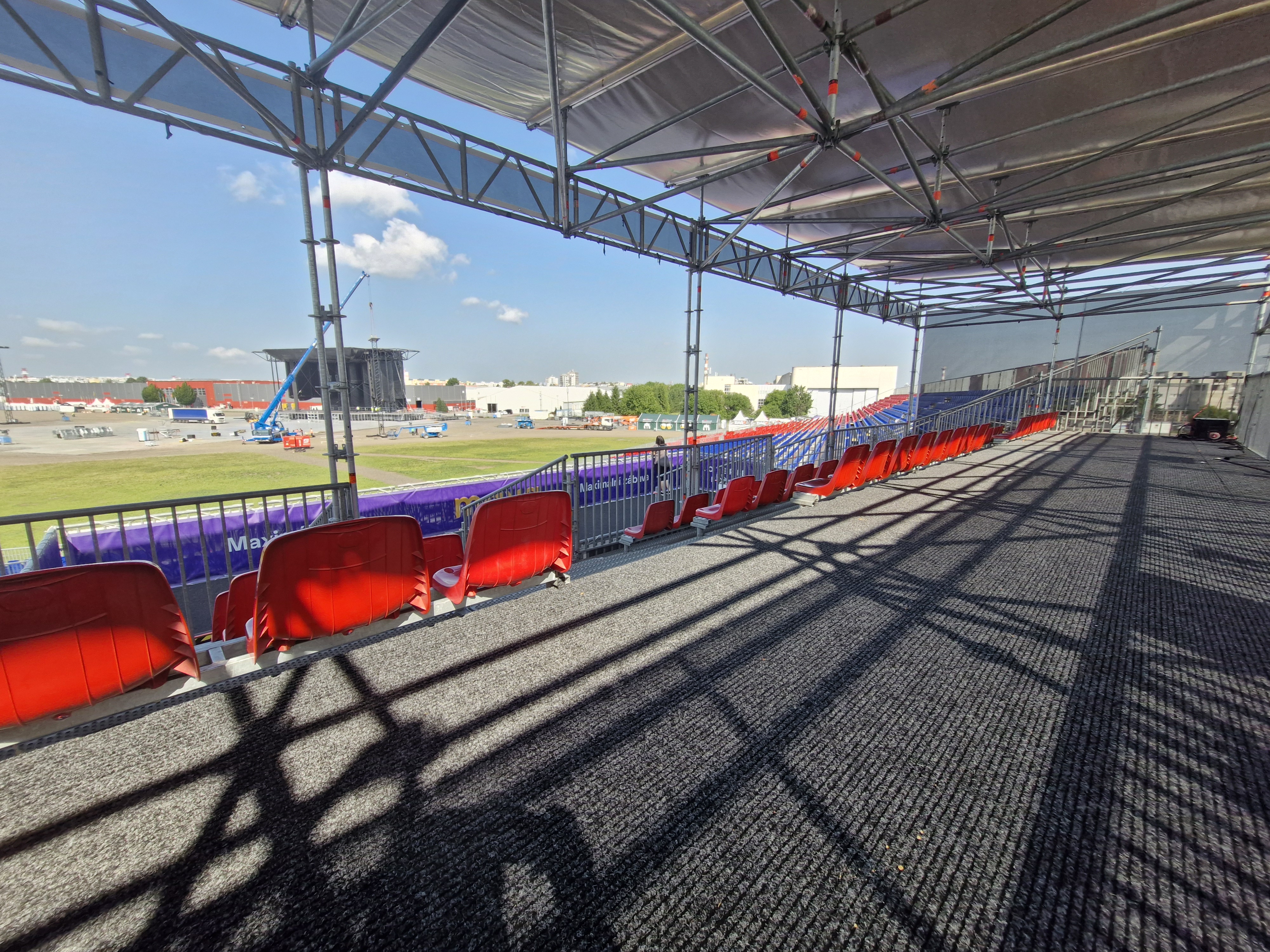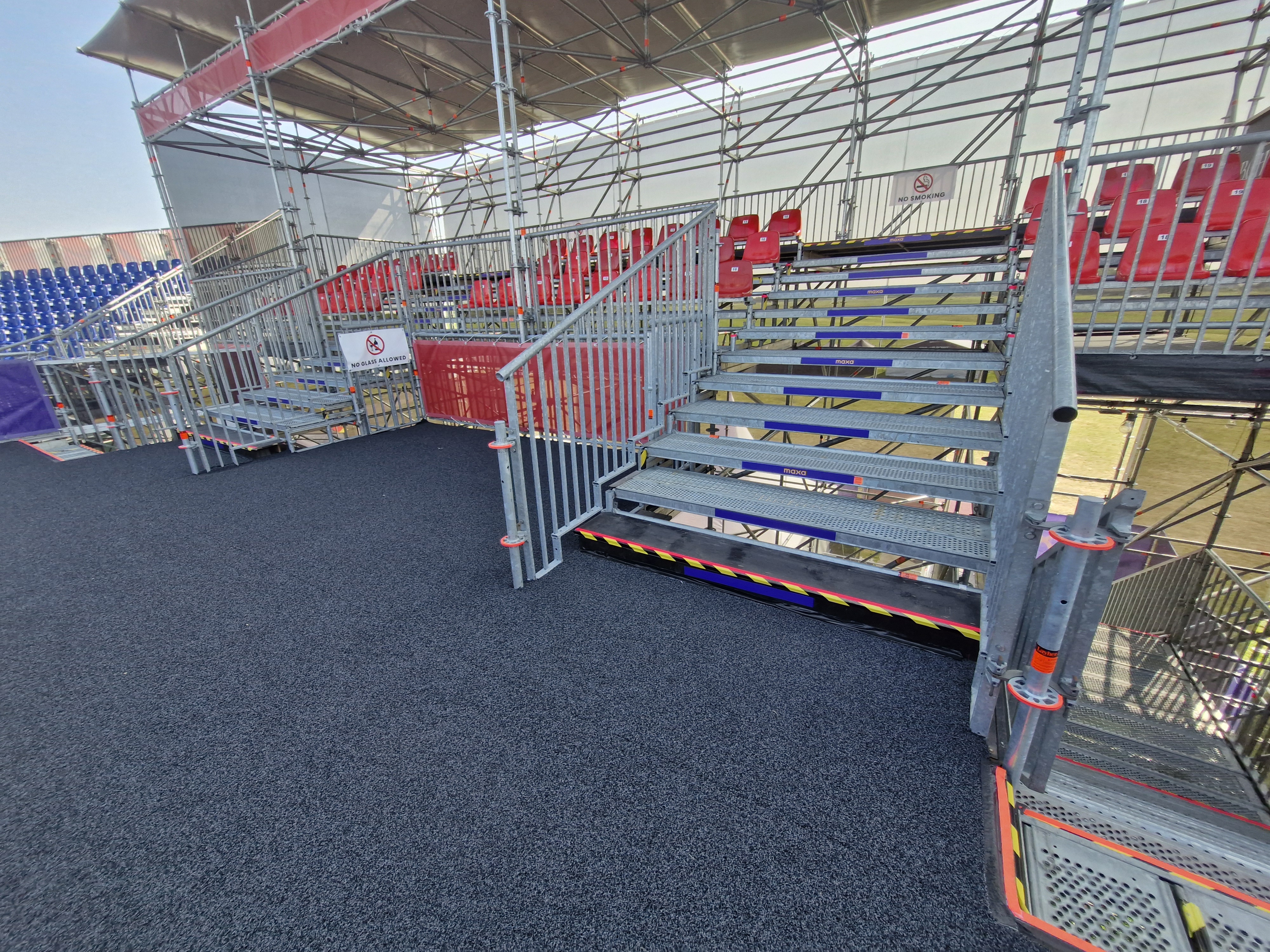 This is a very vast category that includes all kinds of terraces, platforms for television, for VIPs, places for tents, for people with disabilities.... etc. Using the scaffolding systems, we will construct an elevated platform or we can level out differences in terrain and prepare a flat floor for various types of infrastructure. A special type of service is field levelling for tent halls, as such projects require individual static calculations based on local conditions and standards.